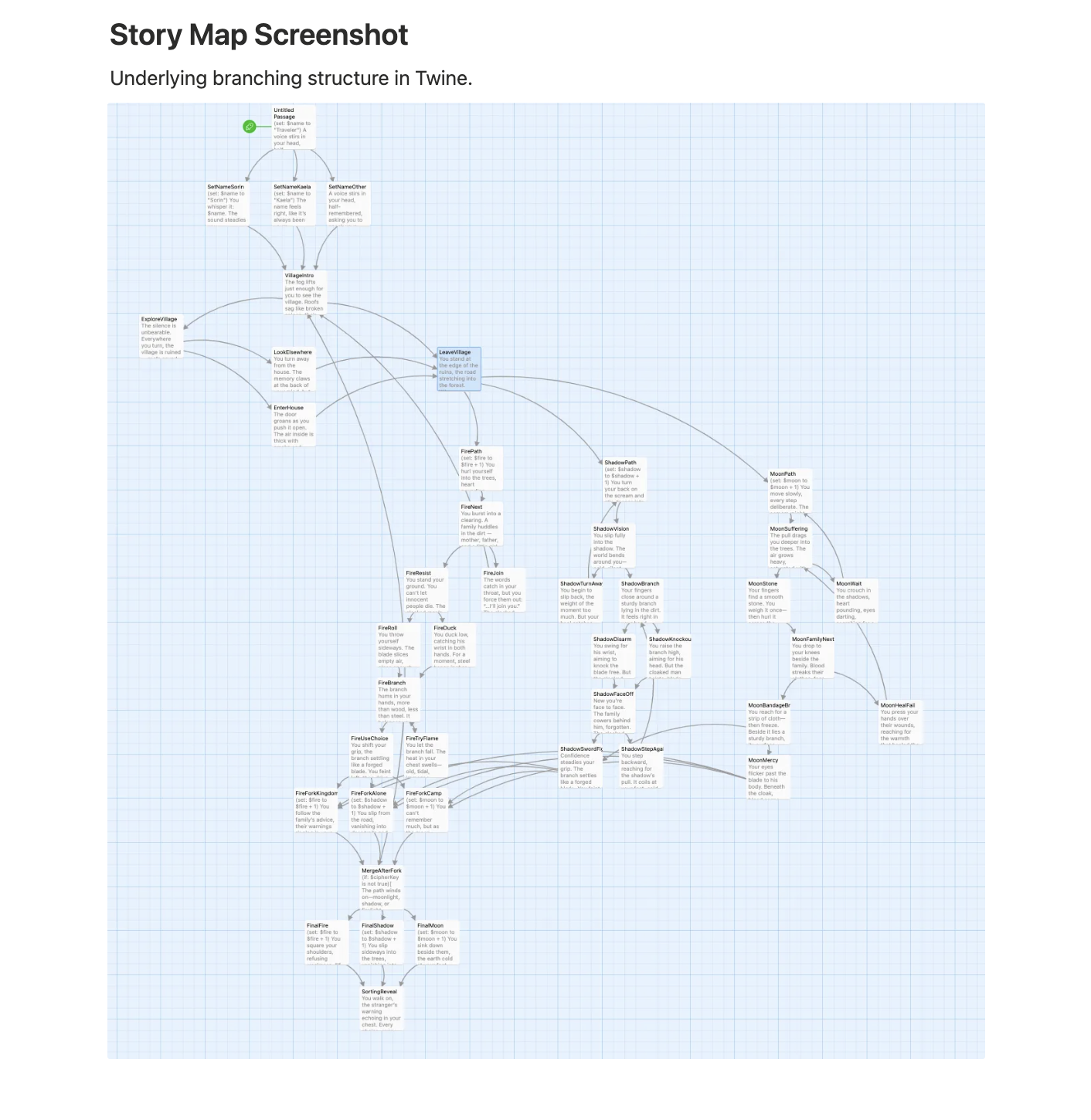 This prototype emphasizes branching choice design, variable tracking, and narrative convergence, striking a balance between agency and a clear story arc.